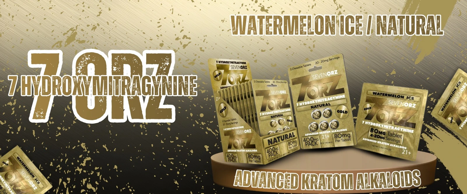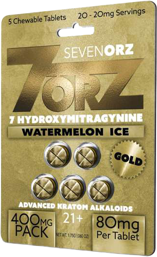 7ORZ GOLD by SevenOrz delivers a high-potency 7-Hydroxymitragynine experience in convenient chewable tablets, offering a total of 400 mg per pack (80 mg per tablet) with 5 tablets providing 20–20 mg servings each, all wrapped in refreshing flavor. Designed for adults 21+, this advanced kratom alkaloid formula ensures fast absorption, consistent strength, and smooth consumption, making it a top choice for users seeking premium quality and on-the-go convenience.